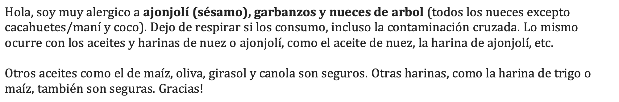 If you have serious food allergies like I do, traveling where English isn’t the first language can be stressful. I print out a couple of sentences in the local language that I can bring to restaurants. It serves 3 purposes: 1) No matter how good someone’s English is, if your life is at stake you want someone reading in their native language; 2) They can bring the paper to the kitchen so it doesn’t become a game of [translated] telephone; 3) Handing them a piece of paper shows that you’re not messing around, and that if they mess up this isn’t just going to result in a little tummy ache.